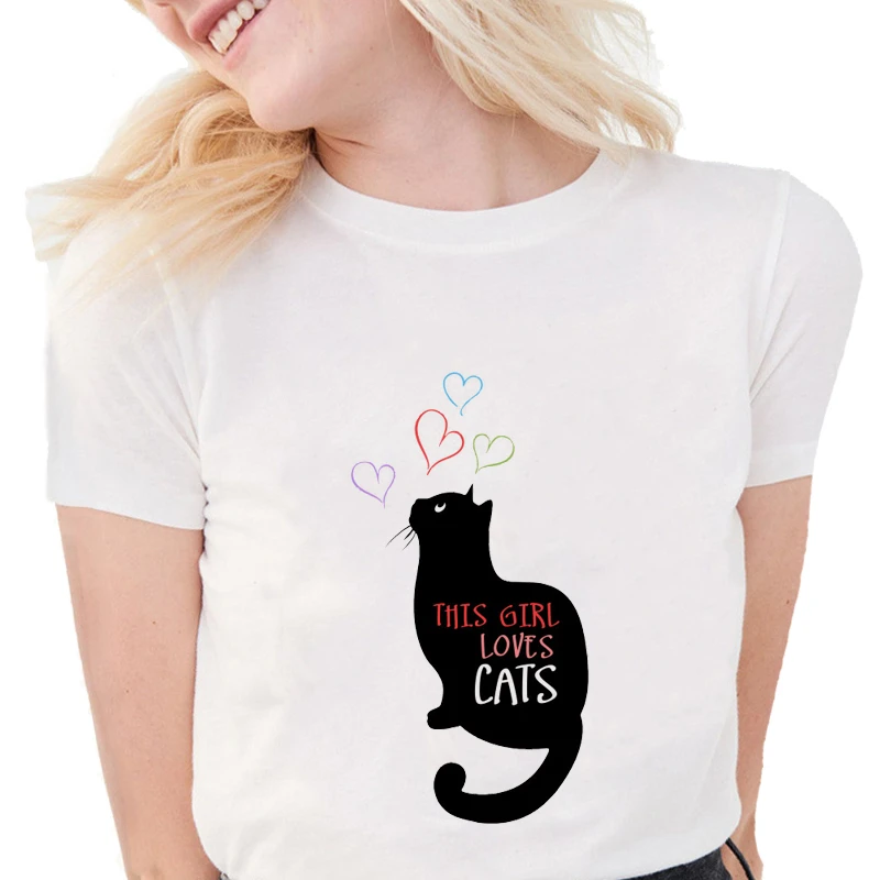 Summer Cute Black Cat T Shirt Women cute black shirts for women